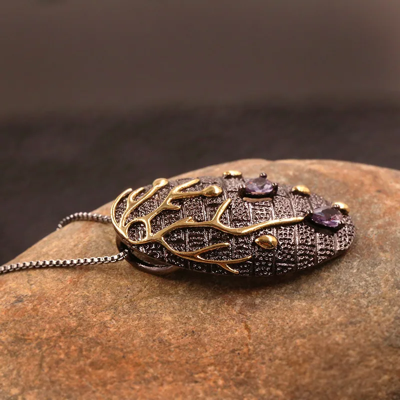 Promo Exaggerated Tree Branch Zircon Necklace for Women Vintage Two Tone Tungsten Gold Oval Personalized