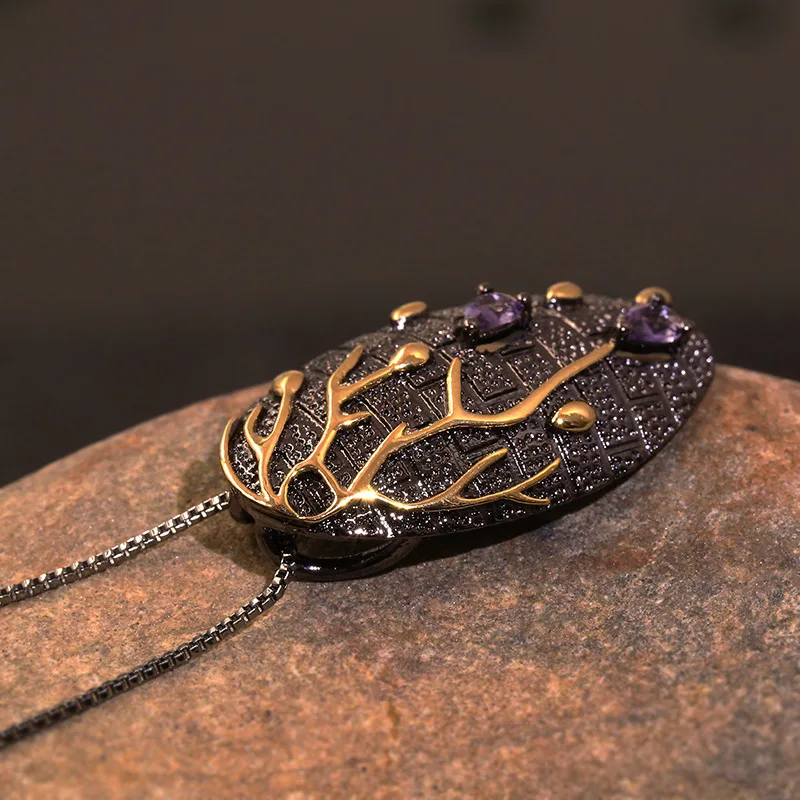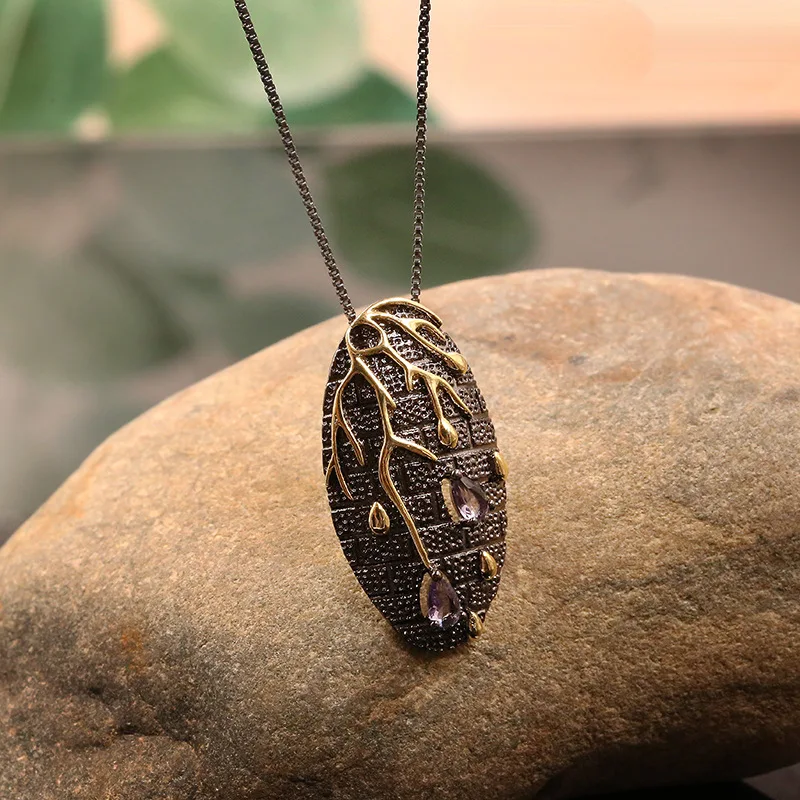 Best Exaggerated Tree Branch Zircon Necklace for Women Vintage Two Tone Tungsten Gold Oval Personalized