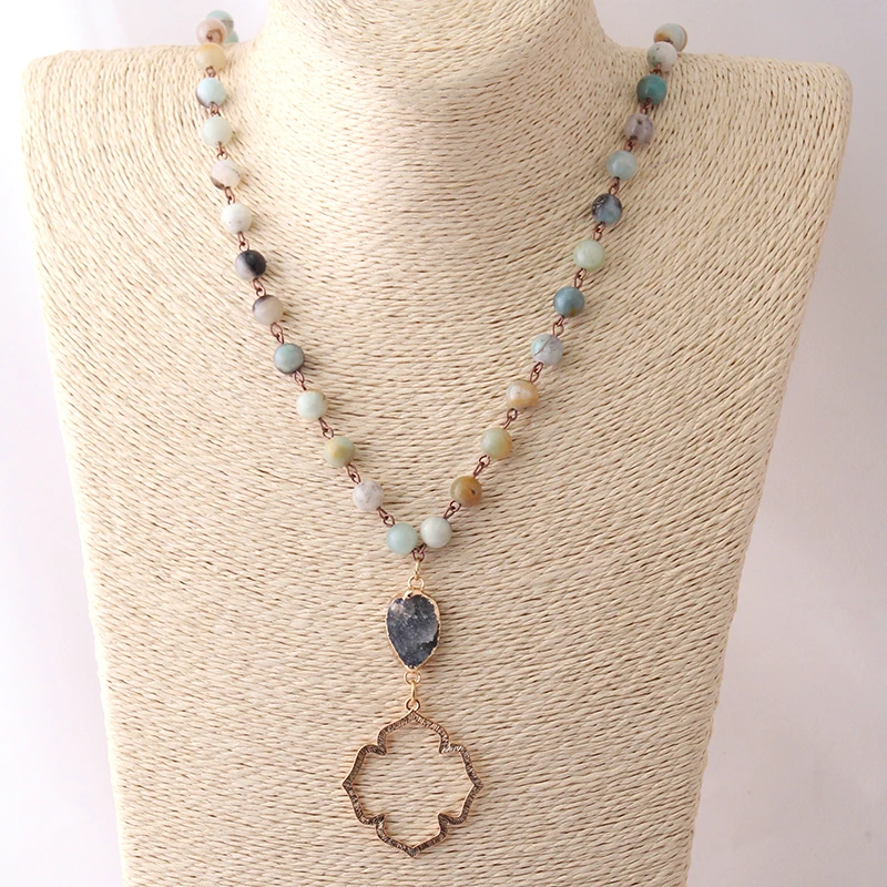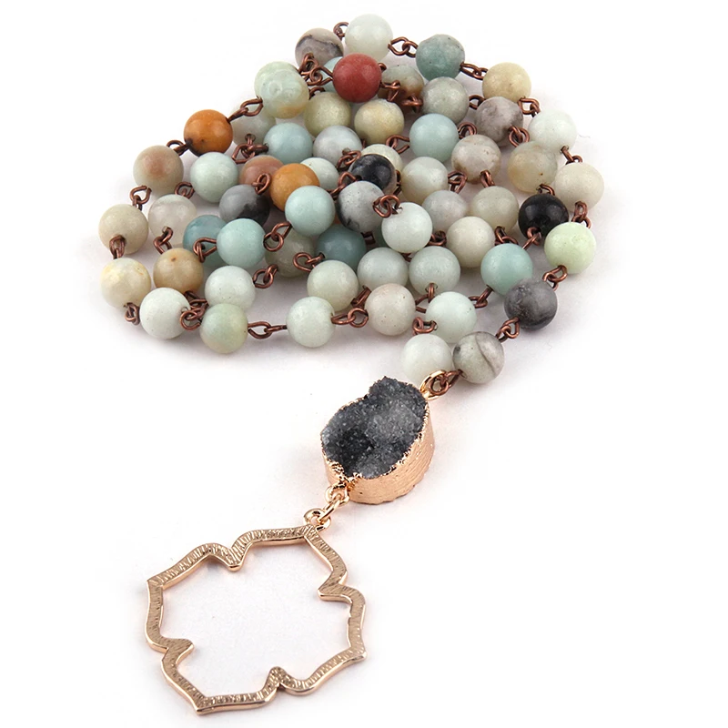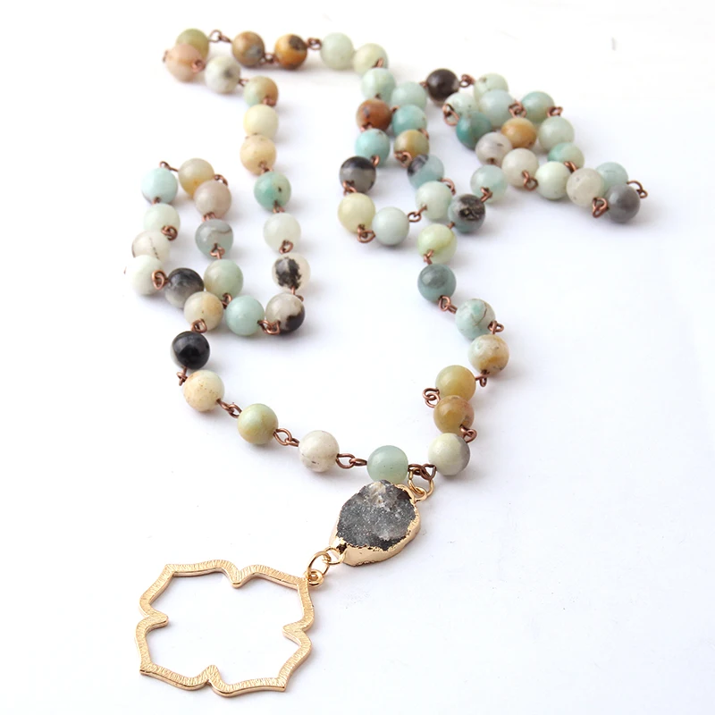 Best Fashion Bohemian Tribal Jewelry Beads Halsband Amazonite Stones Natural Druzy Flower of Life Pendan
