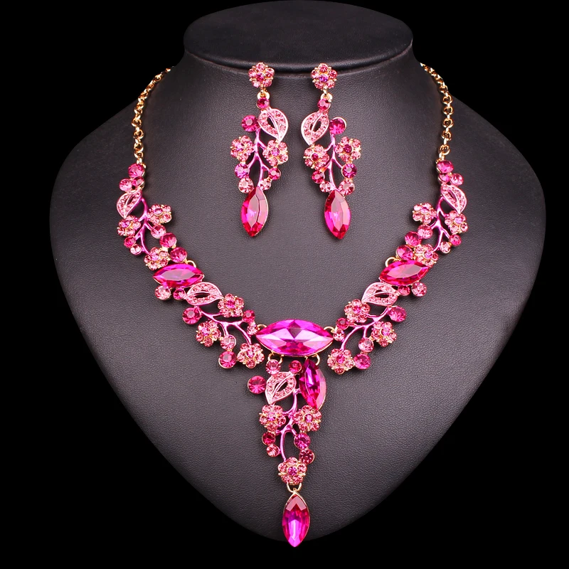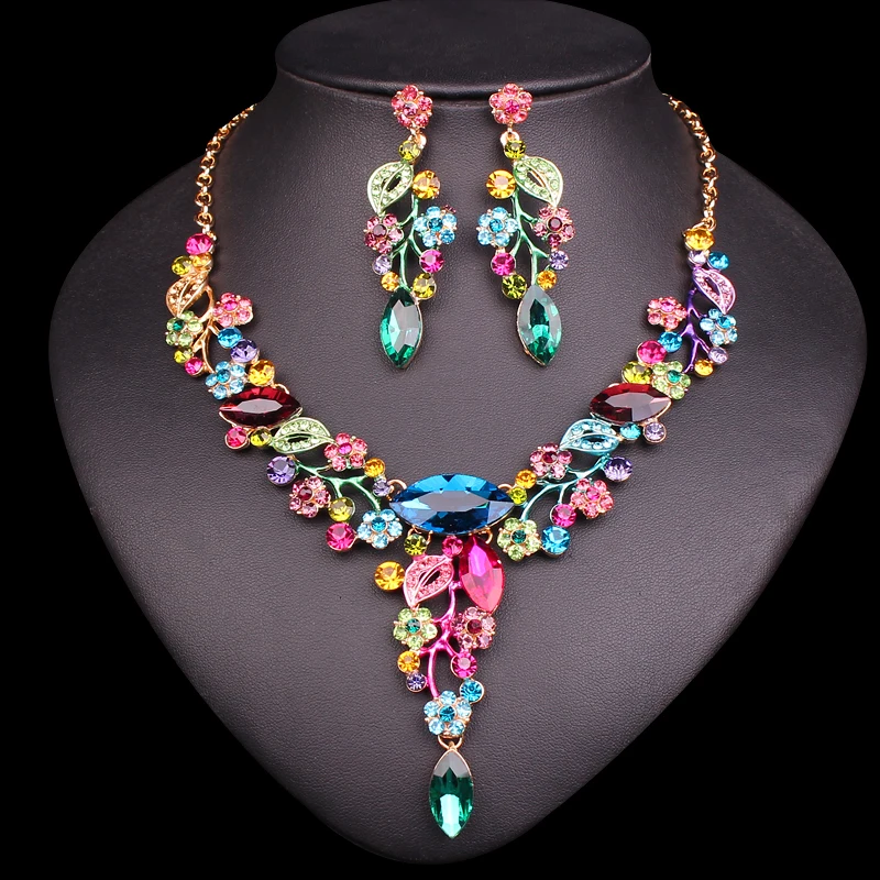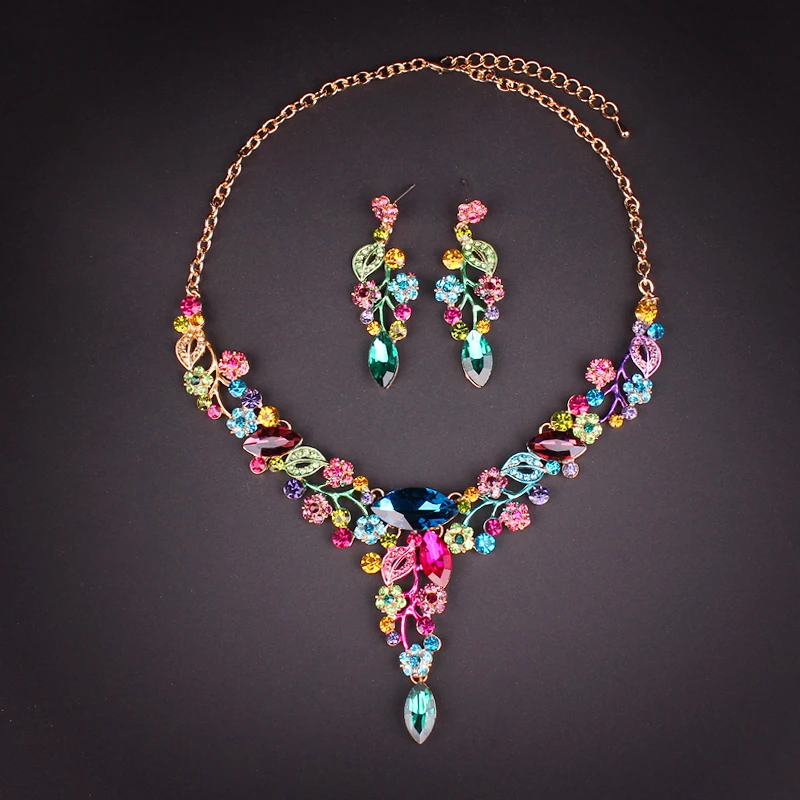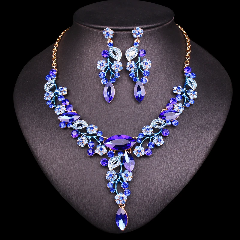 Best Fashion Leaves Flowers Bridal Jewelry Sets Wedding Necklace Earrings sets for Brides Women's Party