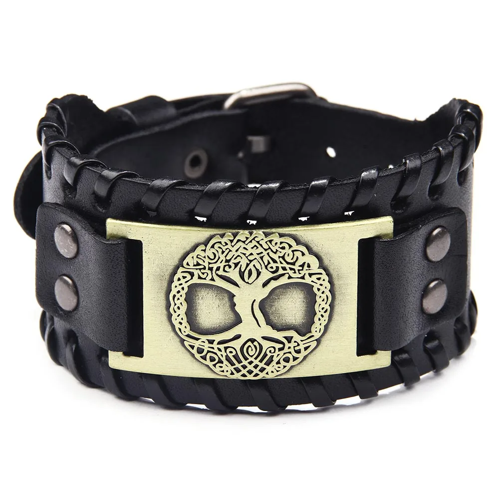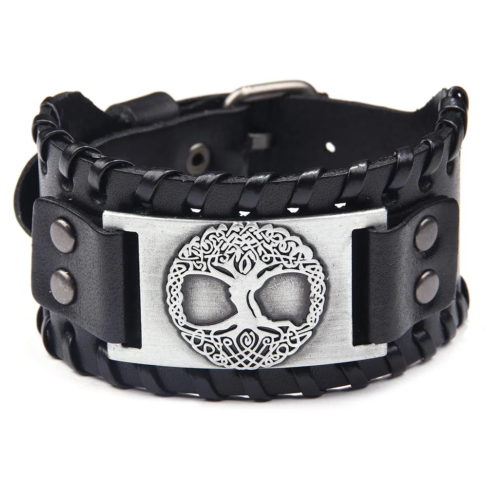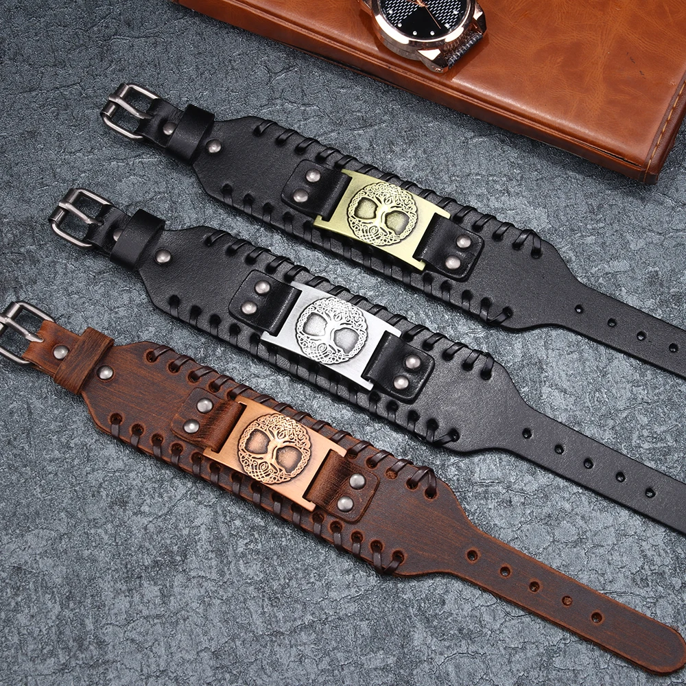 Best New Men Bracelet Life Tree Alloy Wide Leather Bracelet Men's Leather Jewelry Punk Popular Viking Je
