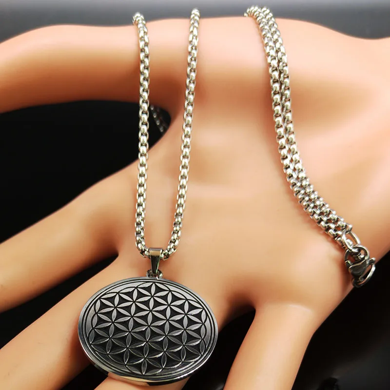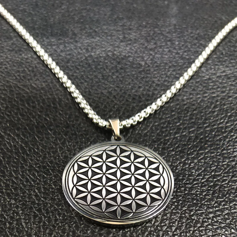 Promo 2019 Fashion Round Stainless Steel Necklace Women Black Flower of Life Choker Necklace Jewelry acer