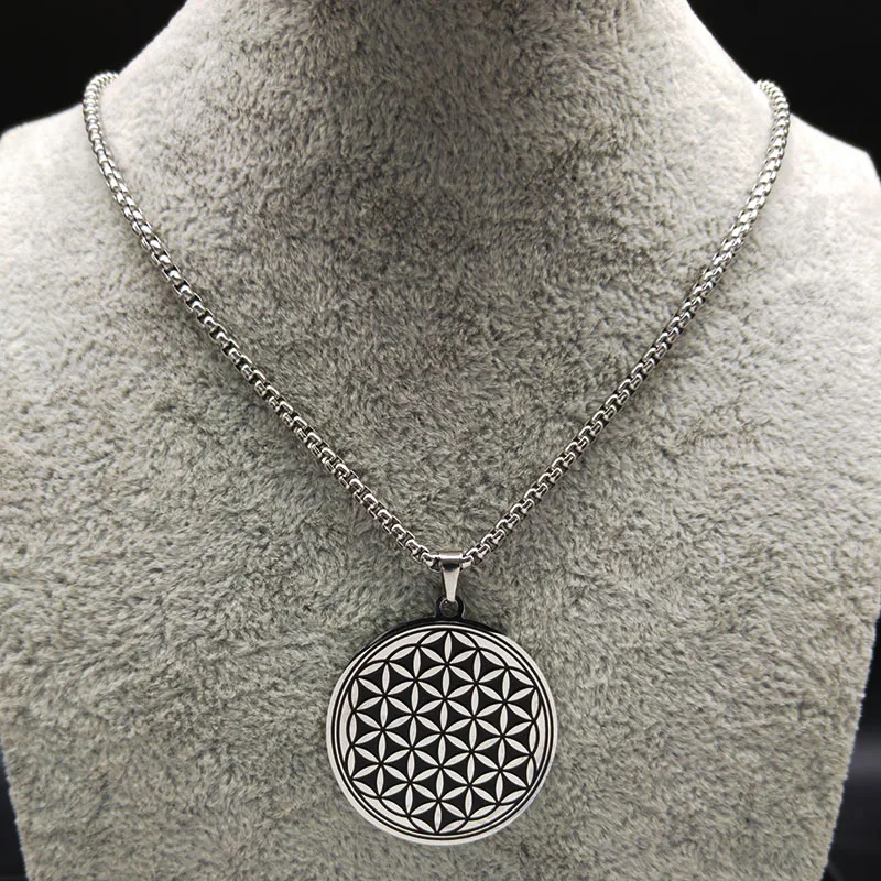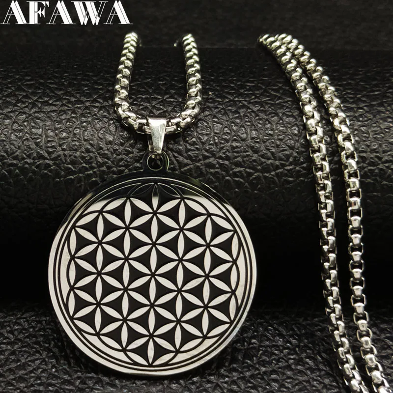 Buy 2019 Fashion Round Stainless Steel Necklace Women Black Flower of Life Choker Necklace Jewelry acer