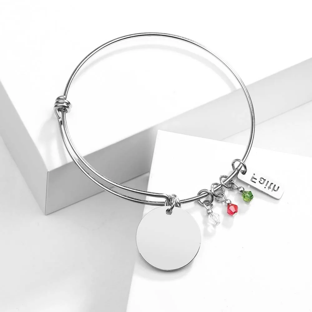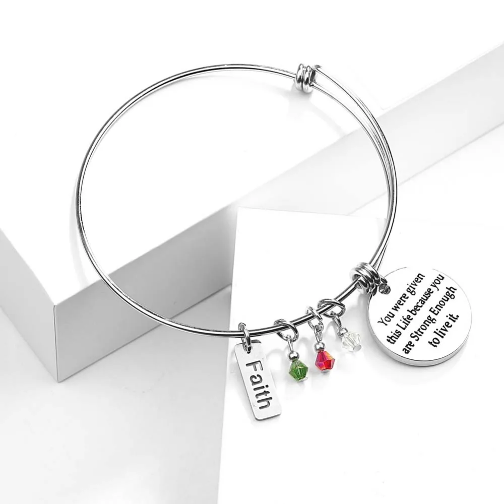 Buy Top Quality Stainless Steel Expandable Wire Bangle Women Inspirational Faith Charms Friendship Brac
