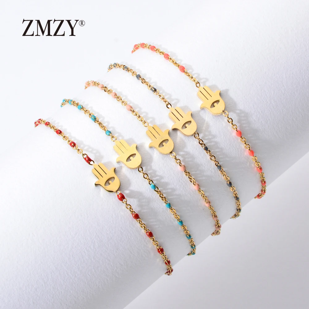 Buy ZMZY Thin Chain Stainless Steel Bracelet Women Gold Color Evil Eye Hamsa Hand Turkish Jewelry Bangl