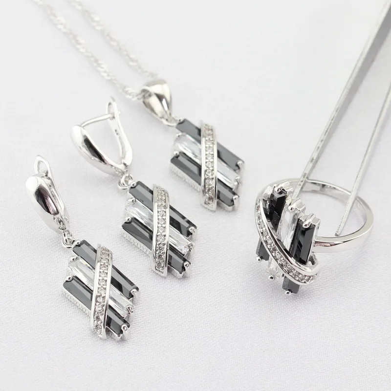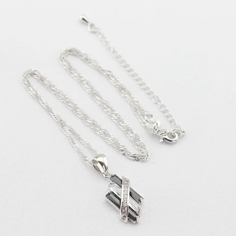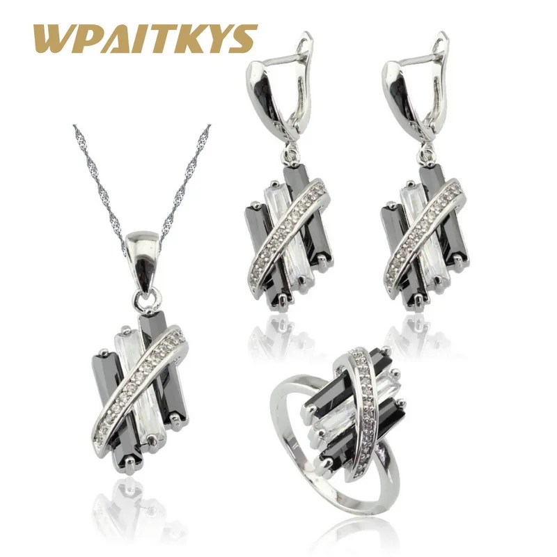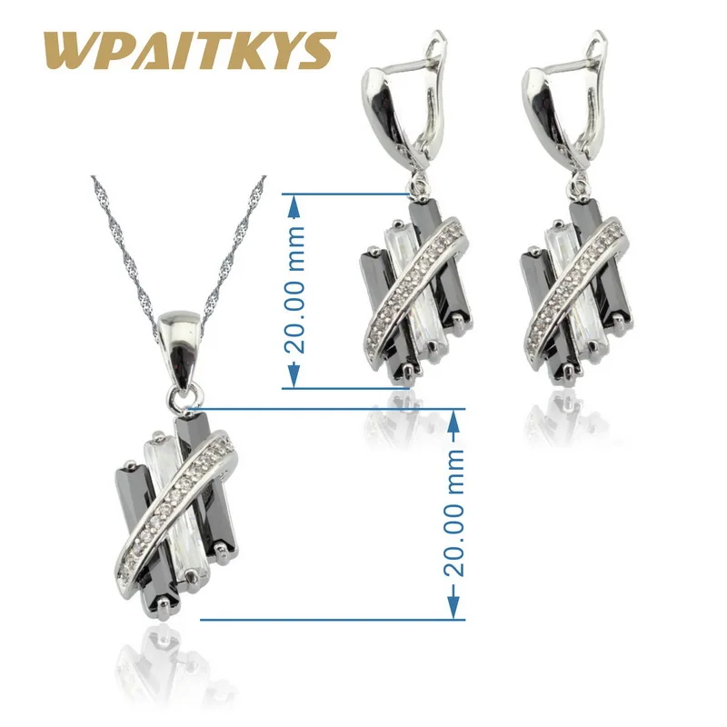 Promo Black Cubic Zirconia White CZ 925 Silver Jewelry Sets For Women Bridal Drop Earrings Necklace Penda