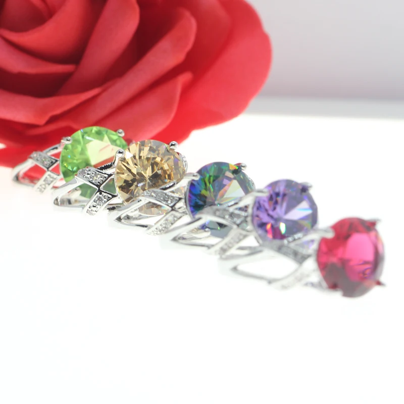 New lingmei Free Shipping Purple Zircon Jewelry Elegant White CZ Silver 925 Ring size 6 7 8 9 10 11 12