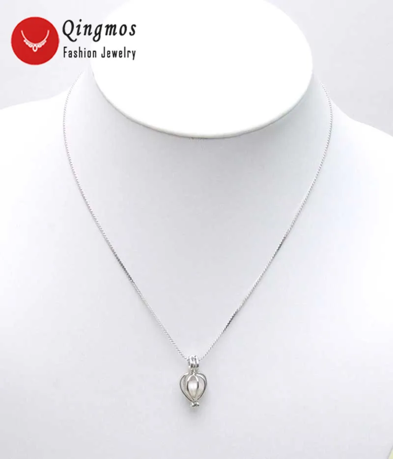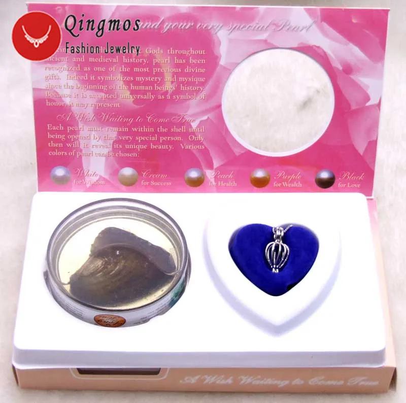 Promo Qingmos Wish Pearl Fashion gift One Box Heart Pendant Necklace for Women with Love Pearl Oyster Cho