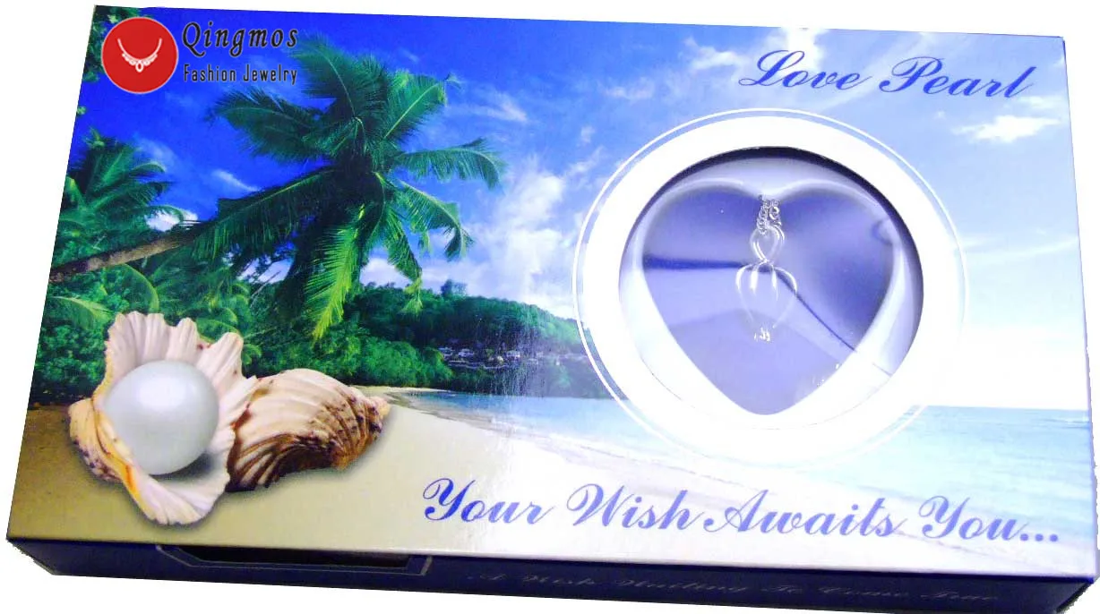 New Qingmos Wish Pearl Fashion gift One Box Heart Pendant Necklace for Women with Love Pearl Oyster Cho