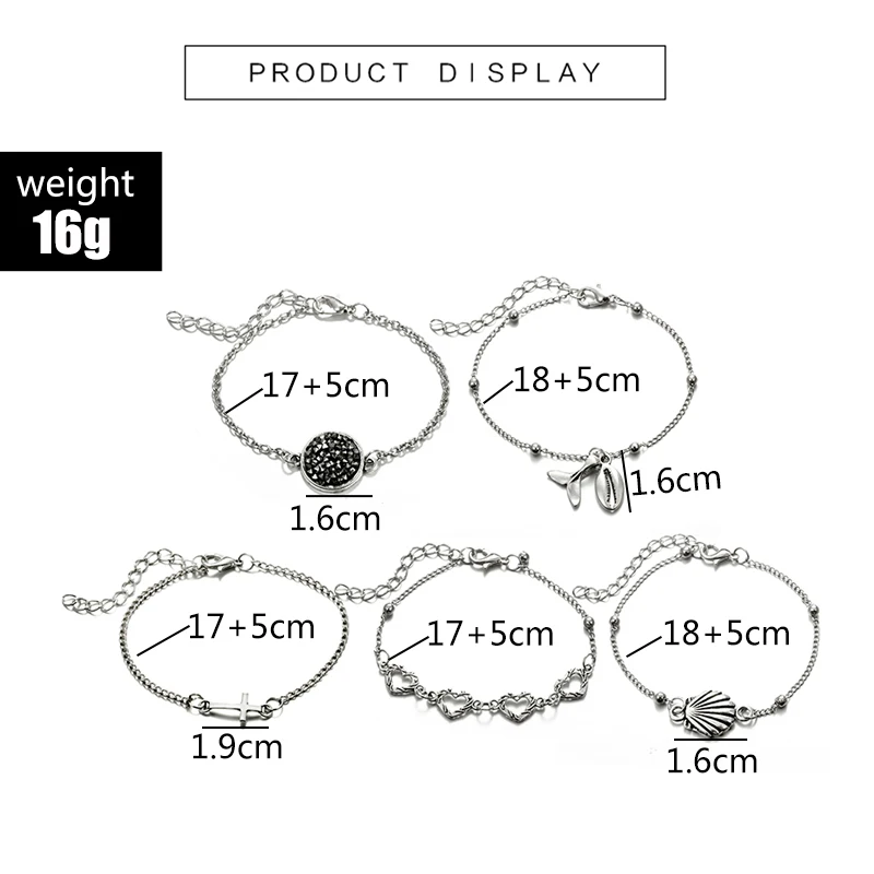 New Tocona 5pcs/Set Bohemia Shell Cross Heart Fish Tail Charm Bracelets set for Women Chain Bracelet Ba