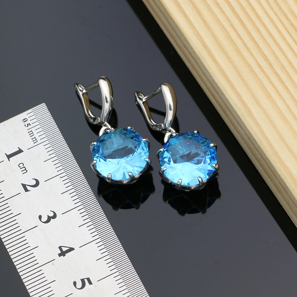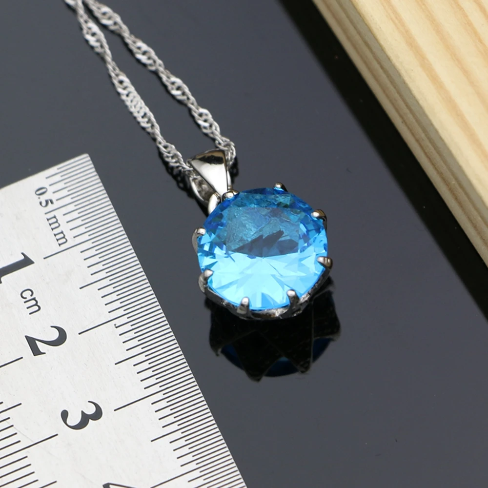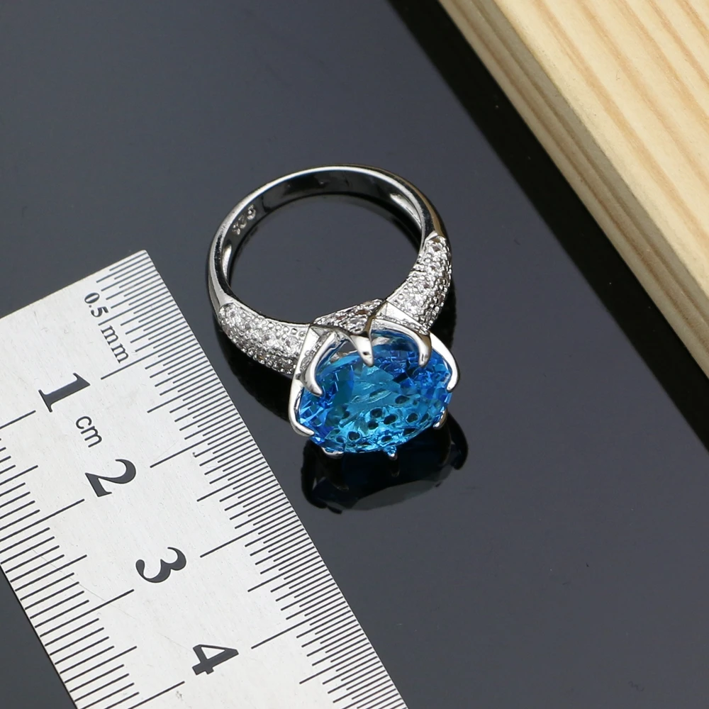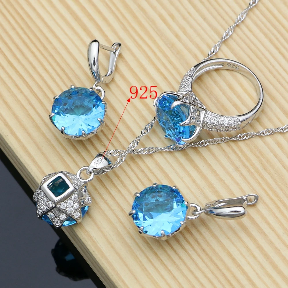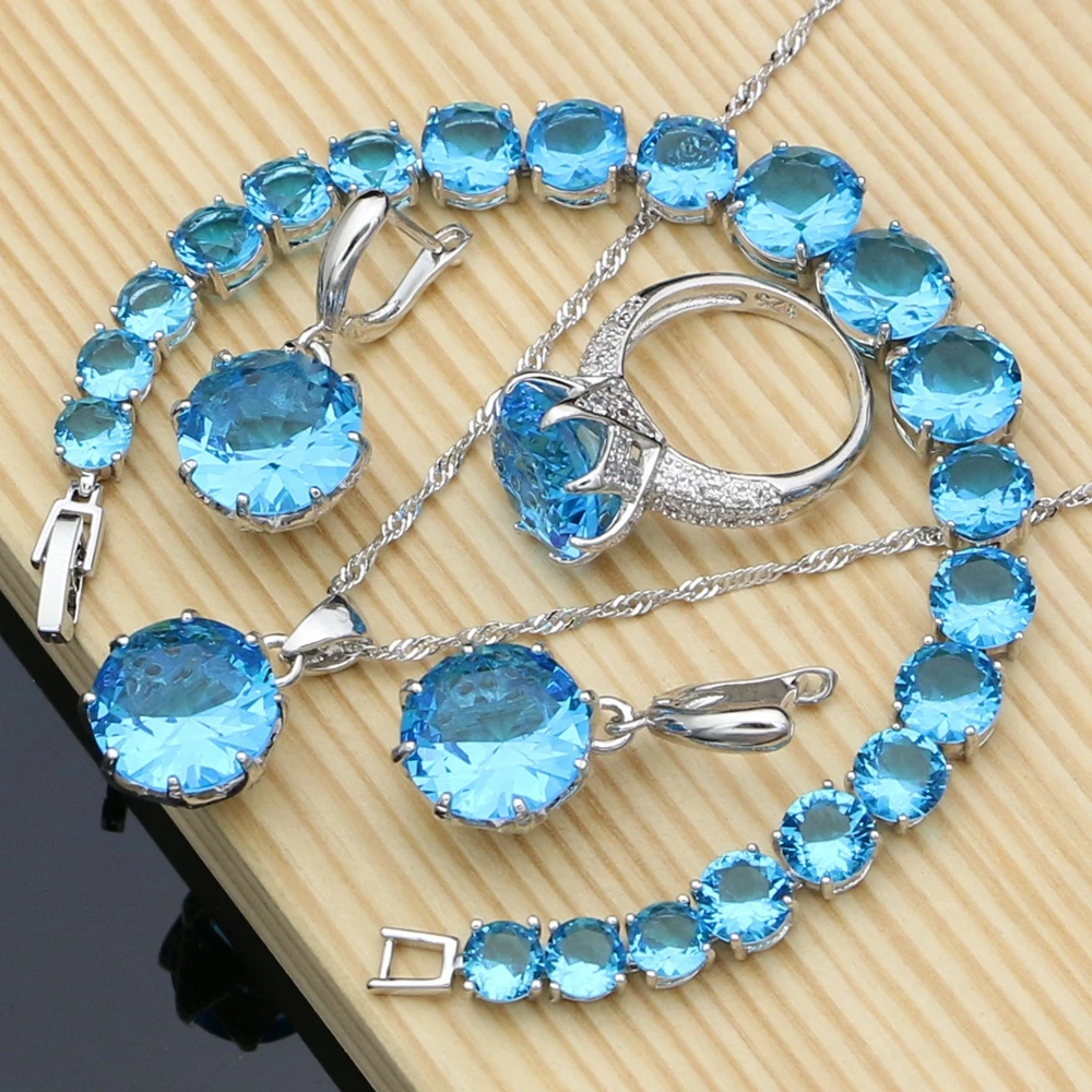 New Blue Crystal Jewelry Sets For Women 925 Silver Costume Jewelry Kits Earrings/Pendant/Rings/Bracelet