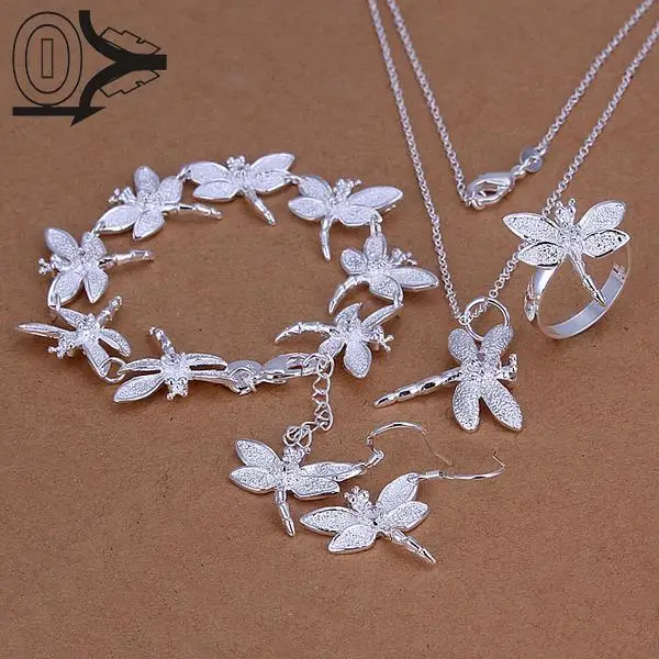 New Wholesale Silver Plated Jewelry SetCheap Bridal Party SetsSimple Inlaid Stone Dragonfly Silver Neck